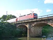 The Taunus railway crosses the Schwarzbach (line-kilometre 14.8) about 100 metres northeast of the Hattersheim (Main) station on a rather nondescript two-arch sandstone bridge. The bridge dates from the origin of the railway from 1839 and is thus—like the Nied railway bridge—one of the oldest still operating railway bridges in Germany. It was based on a design by Paul Camille von Denis. The bridge was renovated with concrete in 1911. It is heritage-listed under the Hessian Monument Protection Act.[11]