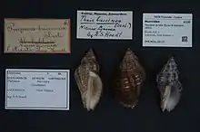 - Fischer-Piette, E. & Beigbeder, J., 1943. Catalogue des types de gastéropodes marins conservés au laboratoire de Malacologie. III. - Purpura et genre voisins ; Tritonidae. Bulletin du Muséum national d'Histoire naturelle 2° série,15(6): 429-436