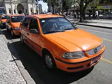 Brazilian taxis are colored red in Porto Alegre and Londrina, orange in Curitiba, yellow in Rio de Janeiro and white in São Paulo, as each city defines its own regulation.