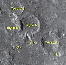 - ↑ "Planetary Names: Crater, craters: Taylor on Moon". Gazetteer of Planetary Nomenclature. Retrieved June 10, 2016.
