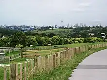 View of Meadowbank Pony Club and Auckland CBD from the pathway