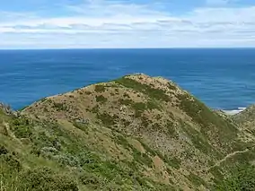 The coastline and hilltops provide views across Cook Strait to the South Island. The reserve includes bush-clad gullies and exposed ridgelines, and has a variety of walking and mountain biking tracks.[1] The highest point in the reserve is Hawkins Hill at 495 metres (1,624 ft), the highest peak in Wellington City.[2] There is a white radar dome (radome) that provides the primary radar and secondary surveillance radar for Wellington Airport and the wider Wellington region.[3]