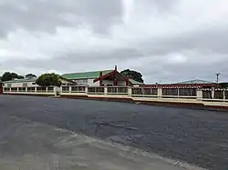 In the 1970s and early 1980s, construction began on the Southwestern Motorway in Māngere Bridge, directly adjacent to the marae.[16][17] While previously on the edge of the Māngere Inlet, land reclamations projects isolated the marae from the Manukau Harbour,[17] destroying the sandy beach that previously bordered the marae.[8] During the construction of the motorway, land adjacent to the marae was rezoned from residential to light industrial, and factories began to surround the marae.[17][18] The motorway cut easy pedestrian access between the marae and the Māngere Bridge village community, disconnecting the marae from the local community.[16][6] This had a strong effect on older members of the community, who were no longer able to walk between the marae and the urupā (cemetery) at St James Anglican Church to the west.[19][17] Complaints about how close the motorway was and the factories which surrounded the marae were made to government bodies, however few actions were taken to resolve these issues.[18]