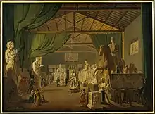 The theatre building outlasted the Barberini theatrical productions and was later altered internally for other uses.[8] The only surviving image of the interior is an 1830 painting showing Pope Leo XII visiting the studio of Bertel Thorvaldsen, by which time it had been split into two floors and rented to the sculptor.[7] In 1932, the building was demolished to make way for the new Via Barberini. The portals, windows, and angle rustication were used in the construction of a new building erected on the reduced site.[8]
