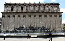 The Friso de los Fundadores de Guadalajara is installed on the building's exterior facing Plaza Fundadores. Completed by Rafael Zamarripa, the high bronze relief measures 3 m high x 21 m long and depicts the founders of Guadalajara.[5][6][7]