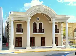 The theater, originally built in 1926 as a movie theater for the Yauco Moving Picture Company, is a two-storey Broadway-type eclectic-style structure with monumental Tuscan columns with Roman amphora crowns that support the rainbow arch and roof which extends over the structure's façade. Although originally intended as a movie theater the venue soon became more popular in the 1920s and 1930s for zarzuelas, operettas and concerts by international musical artists such as by Argentine singer and composer Carlos Gardel. The venue also became popular for political assemblies by figures such as Antonio Rafael Barceló and Luis Muñoz Rivera, and for poetry readings by figures such as Francisco Villaespesa, Luis Lloréns Torres, Evaristo Ribera Chevremont and José Gordils.[2] The theater was eventually closed and partially fell into disrepair until it opened after undergoing renovations between 2000 and 2012.[3] The theater today hosts plays in addition to local events.[4]