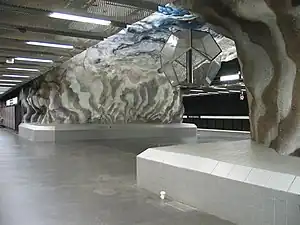 - ↑ Söderström, Göran, ed. (2000). En värld under jord: färg och form i tunnelbanan (in Swedish) (2nd ed.). Stockholm: Stockholmia. pp. 51–52, 108–109, 268–271. ISBN 91-7031-107-2. SELIBR 7593308.