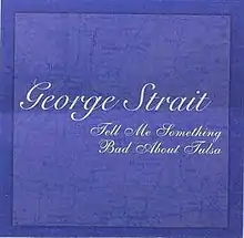 "Tell Me Something Bad About Tulsa" is a song written by Red Lane. It was first recorded by American country music artist Merle Haggard on his 1986 album, Out Among the Stars.[1] Haggard's son, Noel Haggard, covered the song on his 1997 debut album, One Lifetime, and released it as his second single. It peaked at number 75 on the Billboard Hot Country Singles & Tracks chart in August 1997.[2] Noel Haggard's version was released through Atlantic Records and was produced by Barry Beckett.[3]