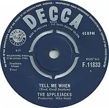 "Tell Me When" is a song by British group the Applejacks, released as their debut single in February 1964. It became their only top-ten hit, peaking at number seven on the Record Retailer chart.[2]