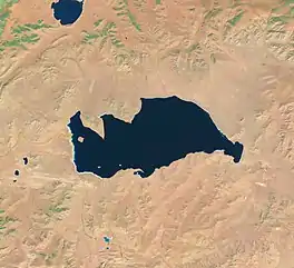 Telmen Lake (Mongolian: Тэлмэн нуур, Chinese: 特勒门湖) is a saltwater lake in Zavkhan, Mongolia. Three islands are located in the lake, which is a gathering point for migratory birds. The water salinity is 6.49-7.61‰.