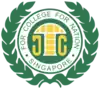 The crest of Temasek Junior College depicts the letters TJC in bold form, with the letter T resembling the silhouette of its Lecture Theatres, reflecting an iconic architectural feature of the College.[8]