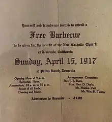 - ↑ Green, W. (1916-12-08). "Catholic Church for Temecula". Lake Elsinore Valley Press – via Library of Congress.