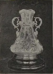 The Temple Cup was a cup awarded to the winner of an annual best-of-seven postseason championship series for American professional baseball from 1894 to 1897. Competing teams were exclusively from the National League, which had been founded in 1876 as the National League of Professional Baseball Clubs. There was only one major league at the time, following the folding of the American Association after the 1891 season, and the series was played between the first and second-place teams of the surviving National League. The series played for the Temple Cup was also known as the "World's Championship Series".[1]