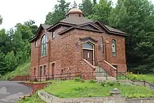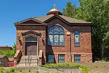 Temple Jacob is a small historic synagogue in Michigan's Upper Peninsula. It owes its origins to the copper boom in the Keweenaw Peninsula in the late 19th and early 20th century. The first Jewish synagogue in the Copper Country, it is also the oldest, continuously active Jewish House of Worship in the Upper Peninsula and the only active synagogue in Michigan listed on the National Historic Register as part of the East Hancock Neighborhood Historic District.[1] The synagogue is located near the north end of the lift bridge which connects the two towns of Houghton and Hancock. It was built on land purchased from the Quincy Mining Company and was dedicated in September 1912. The cornerstone inscribes the building in memory of Jacob, son of Israel Gartner, who was a generous contributor and fundraiser. He died shortly before the building was completed.[2]