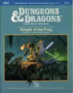 Temple of the Frog (ISBN 0-88038-317-8)[1] is a 48-page[2] 1986[1] adventure module for the Dungeons & Dragons roleplaying game. Its module code is DA2 and its TSR product code is TSR 9175.[1] Another version of it was originally released in 1975 as part of the Blackmoor supplement.[3][4]