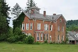 "Templemoor", also known as the Post-Crawford House, is a historic home located near Clarksburg approximately halfway between Romines Mills and Peeltree, in Harrison County, West Virginia. It was built in 1874 for Ira Carper Post, and is a 2+1⁄2-story brick mansion in the Italianate style. It features a combination hip and gable roof covered in polychrome slate shingles. It was the boyhood home of noted West Virginia author Melville Davisson Post (1869-1930) who was famous for mystery and fiction novels. The home includes 13 rooms, many featuring top-of-the-line woodwork.[2]