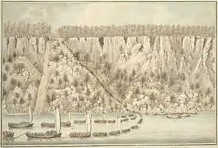 The Battle of Paulus Hook was fought on August 19, 1779, between Colonial and British forces. The patriots were led by Light Horse Harry Lee, and launched a night attack on the British-controlled fort. They surprised the British, taking several prisoners, but had to withdraw before daylight when the British navy could react. The fort continued to be used as a base of operations against Bergen County patriots.