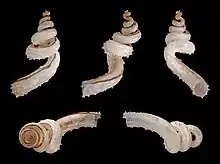 | Five view of a shell of Tenagodus anguinus | |