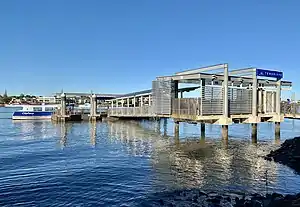 In July 2011, construction began on a new wharf adjacent to the existing one with pontoons for two CityCats and waiting area with seating for 50 people. The old wharf was removed.[7][8] The new terminal opened on 11 January 2012, with services commencing on 23 January 2012.[9]