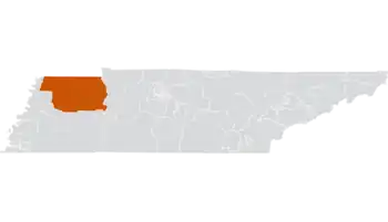 The district is located mostly within Tennessee's 8th congressional district, with a small section extending into the 7th district. It overlaps with the 75th, 76th, 77th, and 79th districts of the Tennessee House of Representatives,[4] and borders the state of Kentucky.[1]