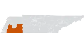 The district is located largely within Tennessee's 7th congressional district, also extending into the 8th district. It overlaps with the 71st, 72nd, 80th, 82nd, and 94th districts of the Tennessee House of Representatives,[4] and borders the states of Alabama and Mississippi. At over 4,000 square miles, it is the largest legislative district in the state.[1]