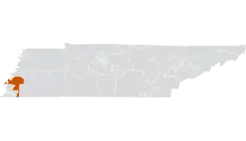 The district is located almost entirely within Tennessee's 8th congressional district, with a small section extending into the 9th district. It overlaps with the 81st, 83rd, 88th, 95th, 97th, 98th, and 99th districts of the Tennessee House of Representatives,[4] and borders the states of Mississippi and Arkansas.[1]