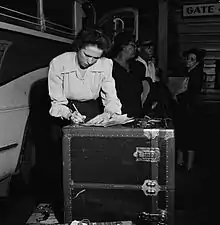A baggage agent checking bags at the Greyhound station in Knoxville, 1943 by Esther Bubley.