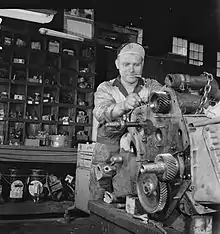 A mechanic rebuilding a bus engine at the TCC garage in Knoxville, 1943 by Esther Bubley.