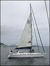 Usually, the award is conferred upon three to six people in a year, a few exceptions have been made in the years 1994, 1995, 2017 and 2019, when more than six recipients were awarded in a year. In its initial year, twenty-two awards were presented, the highest so far for a single year. Nineteen of these awards were given to the 1993 Indo-Nepalese Women's Everest Expedition led by Bachendri Pal.[9] The expedition created four world records at the time including the largest number of mountaineers (eighteen) from a single expedition and the largest number of women (seven) from a single country to scale Everest.[26][27][28] In 2017, ten awards were presented, out of which six were given to the members of Navika Sagar Parikrama (circumnavigation of the globe). They were an all women Indian Navy officers sailing team for the circumnavigation of the globe, on board the Indian Navy Sailing Vessel Tarini (pictured), led by Lieutenant Commander Vartika Joshi.[10][29] Chandraprabha Aitwal (pictured) is the only double recipient of the award, once in 1994 in the category of land adventure for being part of the 1993 Indo-Nepalese Women's Everest Expedition and the second time in 2009 in the category of lifetime achievement in the discipline of mountaineering.[9][30] Before this award was introduced, the Arjuna award was also given for adventure sports and mountaineering; eight people have won both awards. Five expedition members of India's first successful bid to Mount Everest in 1965, Nawang Gombu, Gurdial Singh, Mohan Singh Kohli, H. P. S. Ahluwalia and Sonam Wangyal were awarded the lifetime achievement awards in 2005,[31] 2006,[32] 2007,[33] 2008,[34] and 2017[29] respectively. They were all awarded the team Arjuna award in 1965.[3] Bula Choudhury was awarded the Arjuna award in 1990 in the field of swimming and was presented with the adventure award in 2002 for lifetime achievement in the disciple of open water swimming.[5][15]