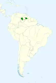 It is found in the tepuis of Brazil, Guyana, and Venezuela. Its natural habitat is subtropical or tropical moist montane forest between 1,000 and 2,500 meters elevation.[1]