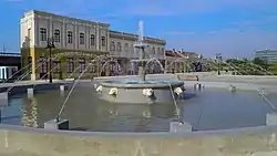 Pedestrian underground passage, with commercial facilities, was dug under Terazije in 1967, connecting Iguman's Palace with Hotel Moskva. Another underground passage, connecting Hotel Balkan and Palace Albanija, envisioned as an underground shopping mall, was finished in 1968.[6] Terazije Tunnel, for traffic, was opened on 4 December 1970.[51] On 12 December 1975, old Terazije Fountain was relocated from Topčider back to the square, and placed at its present location.[6][52] On 25 January 2020, the square and the surrounding area of 23 ha (57 acres) was placed under the state protection as the spatial cultural-historical unit.[1]