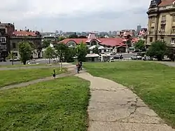 Despite complete urbanization, local farmers, up to the 1920s, were illegally selling goods of the ox carts on and around Terazije. It was one of the reasons for city administration to build a large Zeleni Venac farmers market, on Zeleni Venac, below Terazije.[5] Also despite being the sole center of the city, some areas evaded urbanization until the late 1930s, like the Kuzmanović Yard.[28]
