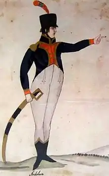 The Andalusian Battalion counted eight companies of fifty-five men, toking part in the military actions against the English troops in the second of the invasions.[3] In 1809, the officers of this Battalion were part of the troops that sustained the Viceroy Liniers against the conspiracy of Martín de Alzaga.[4]