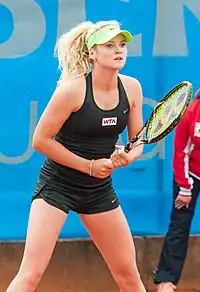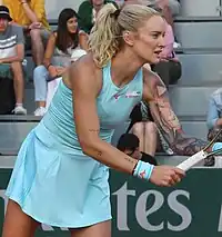 Due to weak tour level performances, she was forced to also play some ITF tournaments. As her preparation for the following clay season, she played at the $80k Zaragoza tournament, where she was advanced to the final. Despite losing to Viktoriya Tomova in the final, it was her first significant result of the year. Still, she continued to struggle with results, since she was eliminated in the qualifying of the Madrid Open, reaching only first round of the Italian Open and losing in the first round of the French Open. During the grass season, she recorded her second tour win of the year at the Birmingham Classic.[8][9] After main-draw first round loss at Wimbledon,[10] she started with some better results. First, she reached semifinal of the WTA Challenger Grand Est.[11] She followed up this with second round of the Warsaw Open,[12] quarterfinals at the Prague Open[13] and another quarterfinal at the WTA Challenger Polish Open.[14]