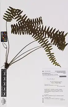 - ↑ PPG I (2016). "A community-derived classification for extant lycophytes and ferns". Journal of Systematics and Evolution. 54 (6): 563–603. doi:10.1111/jse.12229. S2CID 39980610.
