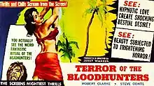Terror of the Bloodhunters is a 1962[2] independently made American black-and-white low budget jungle survival horror film, produced, directed, written, and edited by Jerry Warren, that stars Robert Clarke, Dorothy Haney, and Steve Conte.