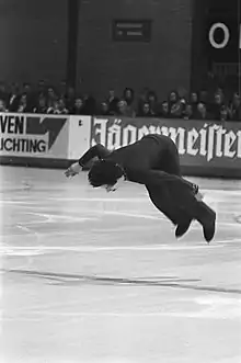 In 1976, he won the U.S. national title, landing five triple jumps in the long program and landing his first back flip.[1] He was named to the American team for the 1976 Winter Olympics in Innsbruck, Austria, where he became the first and only skater to perform a legal backflip; it was banned after the competition.[3][7] To the present time, this move is his most important claim to ice skating fame.[7] Less remembered is his ability to land five of the six triple jumps (except the Axel).[8] In comparison, the gold medalist (John Curry) landed only three triple jumps [9][10] in winning his Olympic gold medal. Indeed, it would not be until 1983 that any skater would land all six different kinds of triple jumps in competition. Brian Boitano accomplished that feat at the World Championships.[11]