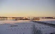 During the wars Tervasaari hosted an anti-aircraft gun and the granary was used as an outpost for its crew.[6] In 1939 the Tervasaarenkannas causeway was built to connect Tervasaari to Pohjoisranta. When a permanent connection to the island had been established, the city began using the island as a storage.[1][2] A tall plank fence was built around the island. In wintertime Tervasaari acted as a dumping ground for excess snow.