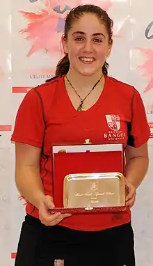 Tesni Evans (born 15 October 1992 in Cardiff) is a professional squash player who represents Wales and is a five time Welsh national squash champion.[1] She reached a career-high world ranking of World No.9 in November 2018, becoming the highest-ranked Welsh woman of all-time and the first to break into the Top 10.[2] Evans has represented Team Wales in the 2014 Commonwealth Games, the 2018 Commonwealth Games and in the WSF World Team Championships.