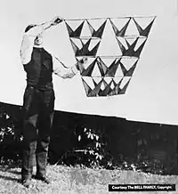 This kite was invented by Alexander Graham Bell. It came about from his experiments with Hargrave's box kites and his attempts to build a kite that was scalable and big enough to carry both a man and a motor. As such, it was an early experiment on the road to manned flight. He worked on the kites between 1895 and 1910.[1] Bell wrote about his discovery of this concept in the June 1903 issue of National Geographic magazine; the article was titled "Tetrahedral Principle in Kite Structure".[2]