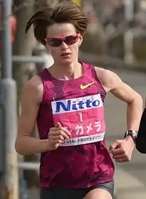 Gamera claimed a second consecutive Osaka International Ladies Marathon title in January 2014, winning in a time of 2:24:37.[8] This result was among her many performances from 2011 to 2015 later annulled due to her conviction for doping.[2] She won a third consecutive Osaka Marathon in January 2015, with a winning time of 2:22:09, a national record time.[9] This result was among her many performances from 2011 to 2015 later annulled due to her conviction for doping.[2]