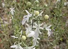 Teucrium racemosum, also commonly referred to as either the grey germander[2] or forest germander,[3] is a species of flowering plant in the family Lamiaceae. It is endemic to Australia and is found in all mainland states, the Northern Territory and the Australian Capital Territory. It grows in floodplains, dry lake beds and open woodlands. A perennial herb, it has four-sided, densely hairy stems, narrow egg-shaped leaves, and white flowers usually arranged singly in leaf axils. It grows to be between 15 and 40 cm tall.