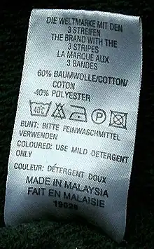 The Textile Labelling Act (Germany) (German: Textilkennzeichnungsgesetz Lit:"Law on the designation of textiles", short TextilKennzG) is a German federal law which was decreed on 1 April 1969. The law was completely rewritten and the new version was announced on 14 August 1986. The law was last changed by decree on 14 November 2006.