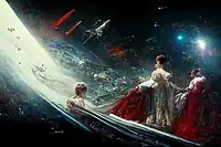 Théâtre D'opéra Spatial (French for "Space Opera Theater") is an image created by the generative artificial intelligence platform Midjourney, using a prompt by Jason Michael Allen. The image became a news story when it won the 2022 Colorado State Fair's annual fine art competition on September 5, becoming one of the first AI generated images to win such a prize.[1][2]