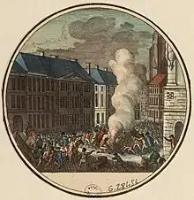 On 29 April 1792, following the loss of a skirmish with Austrian forces, Dillon was murdered by his own men outside the city of Lille. The troops apparently believed that their defeat by the Austrians was the result of a conspiracy on the part of Dillon, whom they called a "traitor and aristocrat."[1]