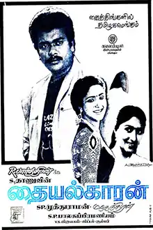 Thaiyalkaran (transl.Tailor) is a 1991 Indian Tamil-language drama film directed by S. P. Muthuraman, written by Mahendran and produced by Kalaipuli S. Thanu. The film stars R. Parthiban, Aishwarya, Saikumar Pudipeddi, Sreeja and Charmila, with Muralikumar, Chokkalinga Bhagavathar, Vasu Vikram, Dubbing Janaki and Ganeshkar in supporting roles. It was released on 14 January 1991.[1][2]