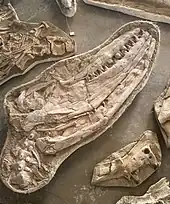 - ↑ Catherine R. C. Strong; Michael W. Caldwell; Takuya Konishi; Alessandro Palci (2020). "A new species of longirostrine plioplatecarpine mosasaur (Squamata: Mosasauridae) from the Late Cretaceous of Morocco, with a re-evaluation of the problematic taxon 'Platecarpus' ptychodon". Journal of Systematic Palaeontology. 18 (21): 1769–1804. doi:10.1080/14772019.2020.1818322. ISSN 1477-2019. S2CID 224978215.