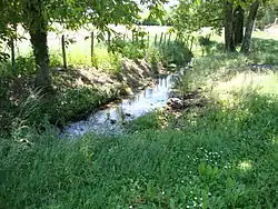 It has an average discharge of 0.34 m³/s, and its tributaries are the ru Guillot, ruisseau du Bois and ruisseau de Guerlande.