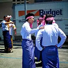 Thangyat (Burmese: သံချပ်) is a Burmese performance art that blends traditional folk verse performances accompanied by the beat of traditional drums or a hsaing waing ensemble,[1] and interspersed with song, dance and chant routines,[2] and performed during festive occasions, particularly during Thingyan in the lead up to the Burmese New Year.[3]