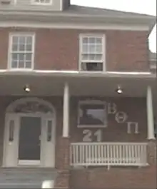 The Fraternity House of Beta Theta Pi with the mark of The 21 Society.